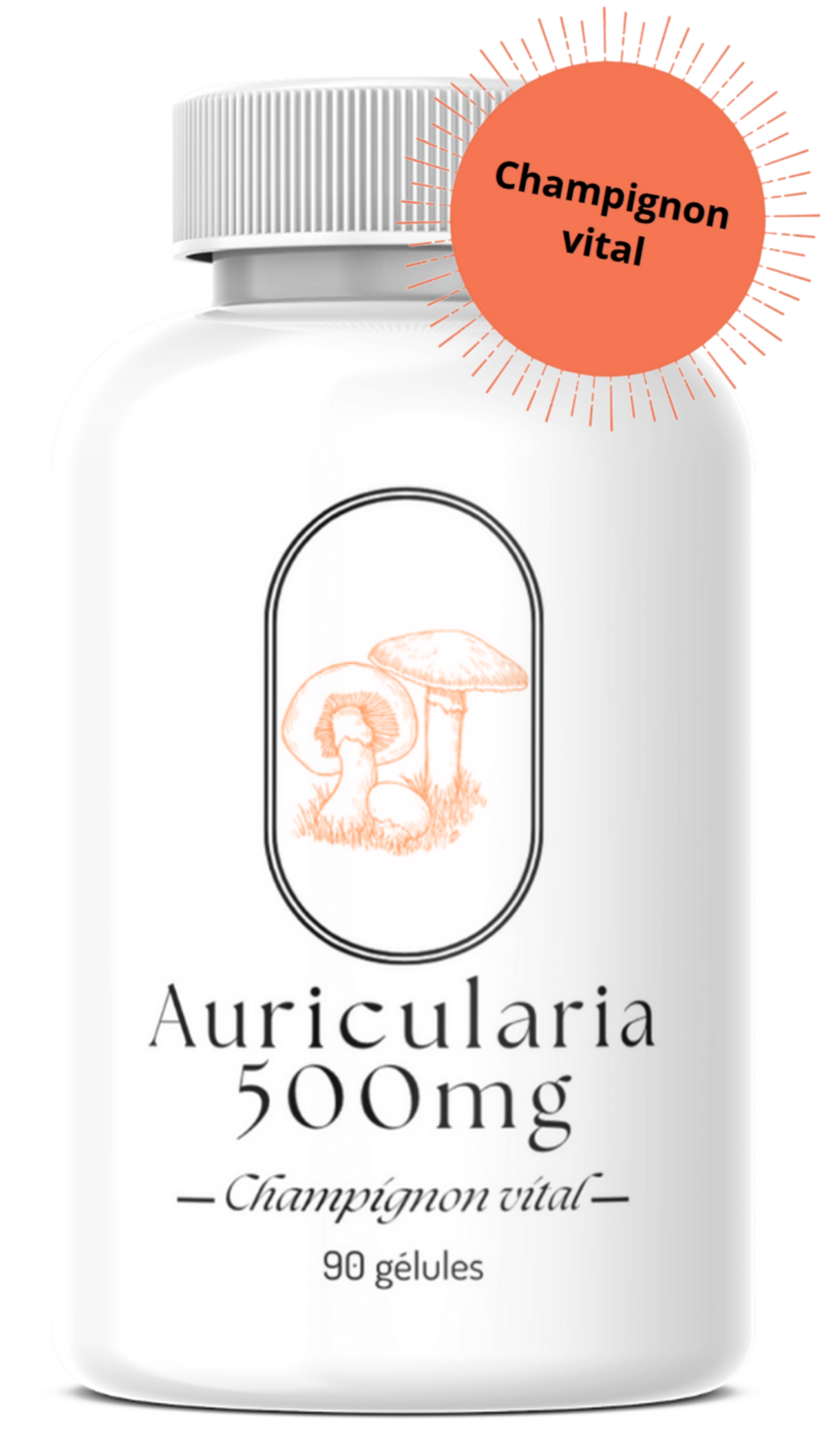 Composition: Poudre d'auricularia (Auricularia auricula-judae (Bull.) Quél.), agent d'enrobage hydroxypropylméthylcellulose (enveloppe de la capsule), agent de remplissage cellulose microcristalline, antiagglomérant sels de magnésium d'acides gras alimentaires, mélange d'extraits de riz